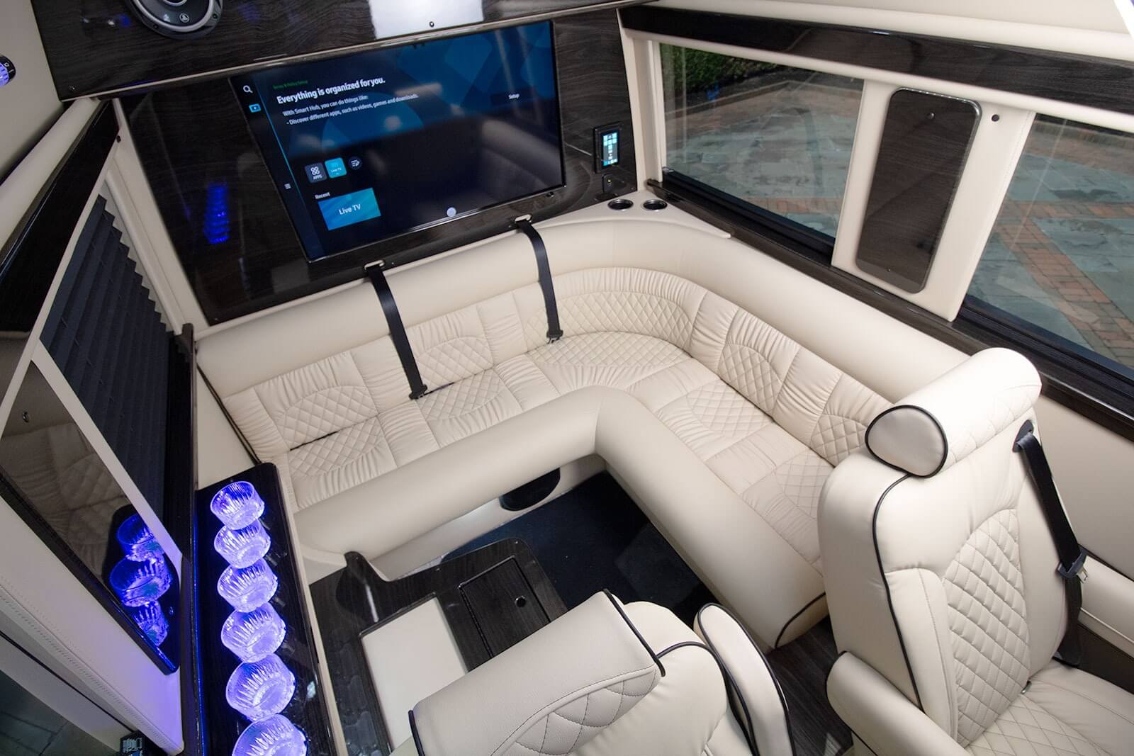 - Advanced amenities: Hand-sewn leather captain’s chairs, advanced electronics packages, and two different bar options.