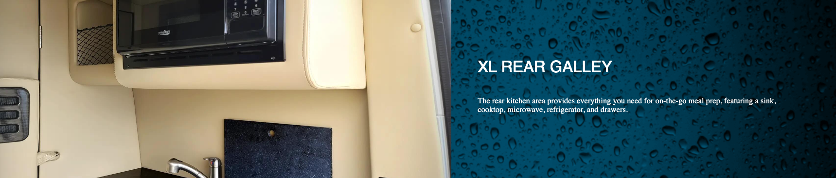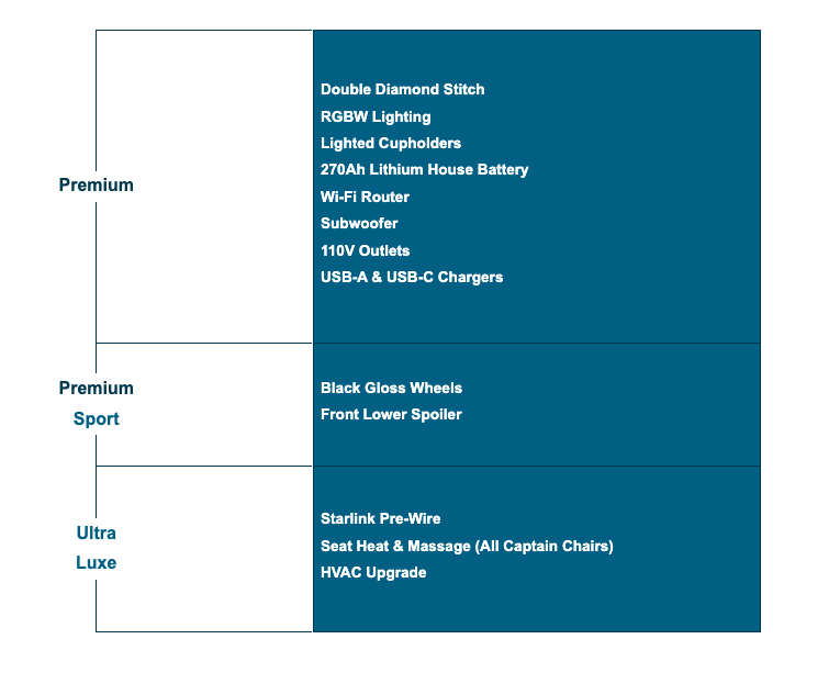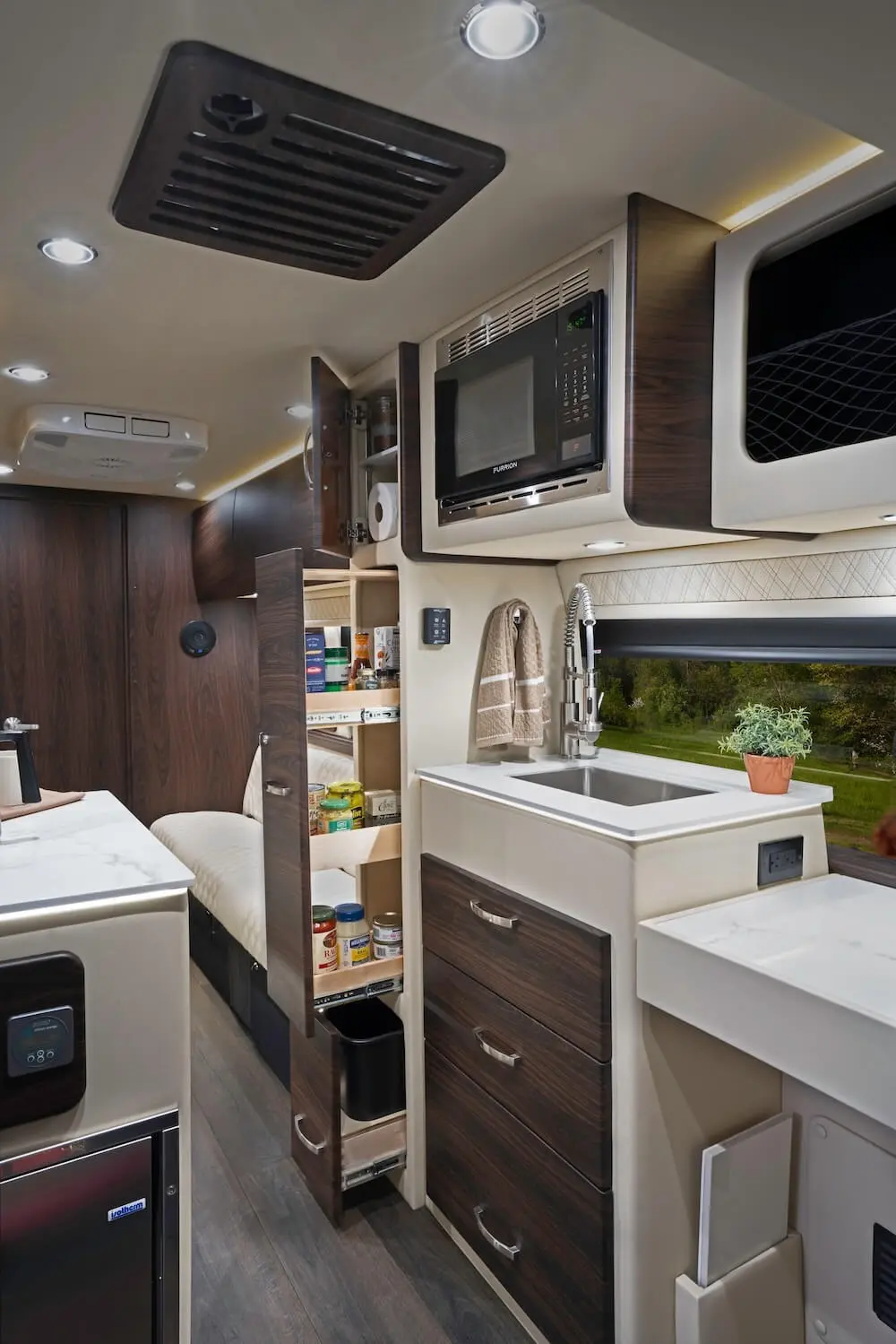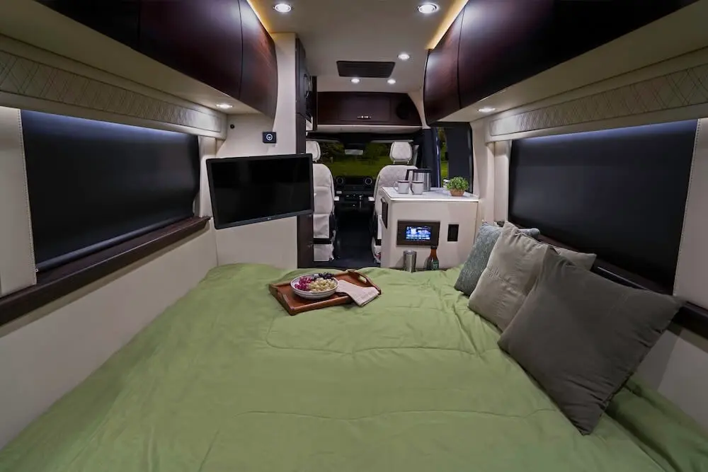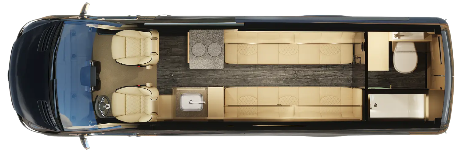 We believe our Ultimate Weekender takes the crown in the "RV with a dry bath" competition, but it also sets new standards in digital connection, comfort, and convenience. Drive home any of our three Ultimate Weekender configurations, and you will be in command of a tech-rich Sprinter van with Wi-Fi, Apple TV®, an Alpine® rear entertainment system with an amp and subwoofer, a rear 24-inch LG Smart HD TV, and a Firefly integrated touchscreen control system – and that's just inside the cabin.